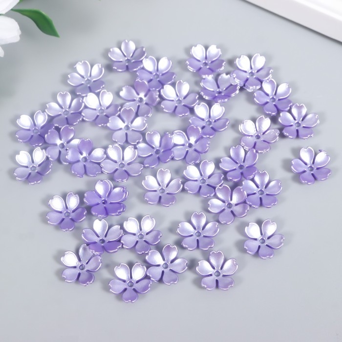 Бусины для творчества пластик "Цветочек жемчужный" набор 40 шт фиолетовый 1,5х1,5 см