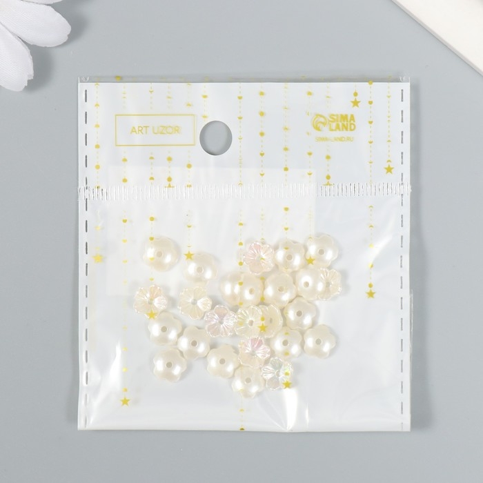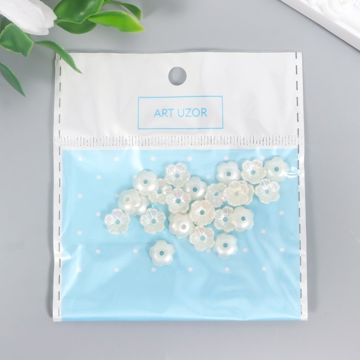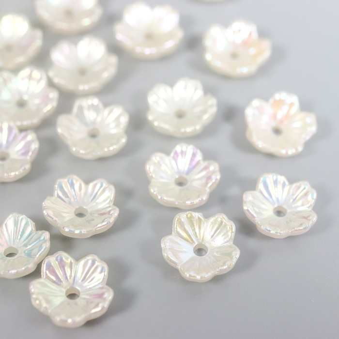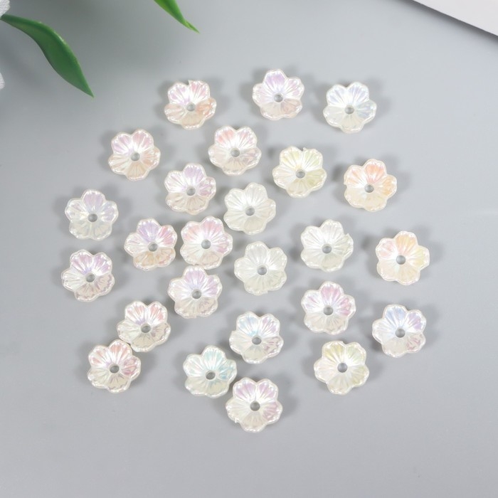Бусины для творчества пластик "Цветок" набор 25 шт жемчужный перламутр 0,8х0,8 см