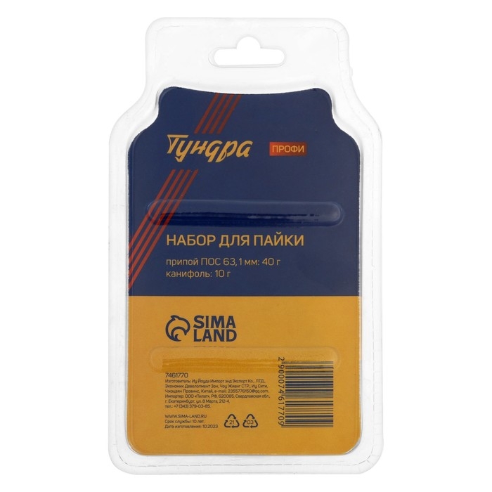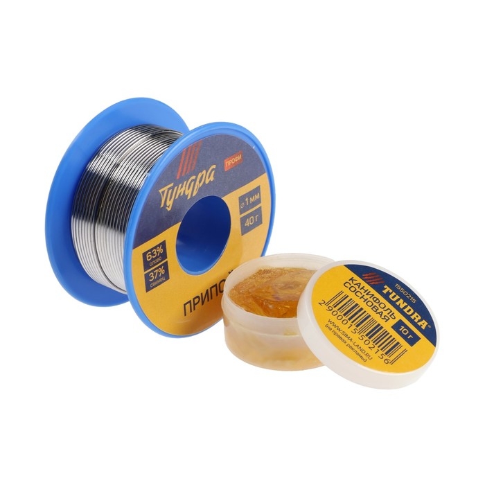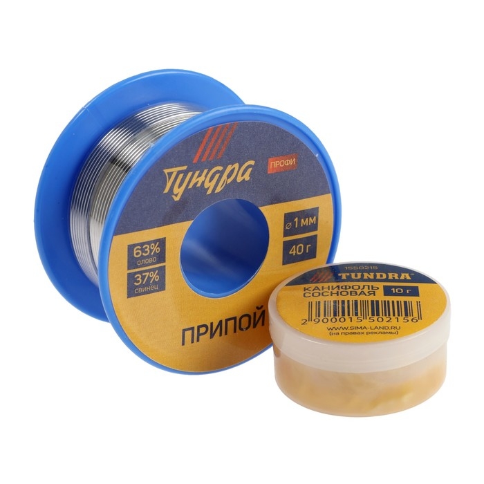 Набор для пайки ТУНДРА ВДОМ, припой ПОС 63 (1 мм, 40 г), канифоль (10 г)