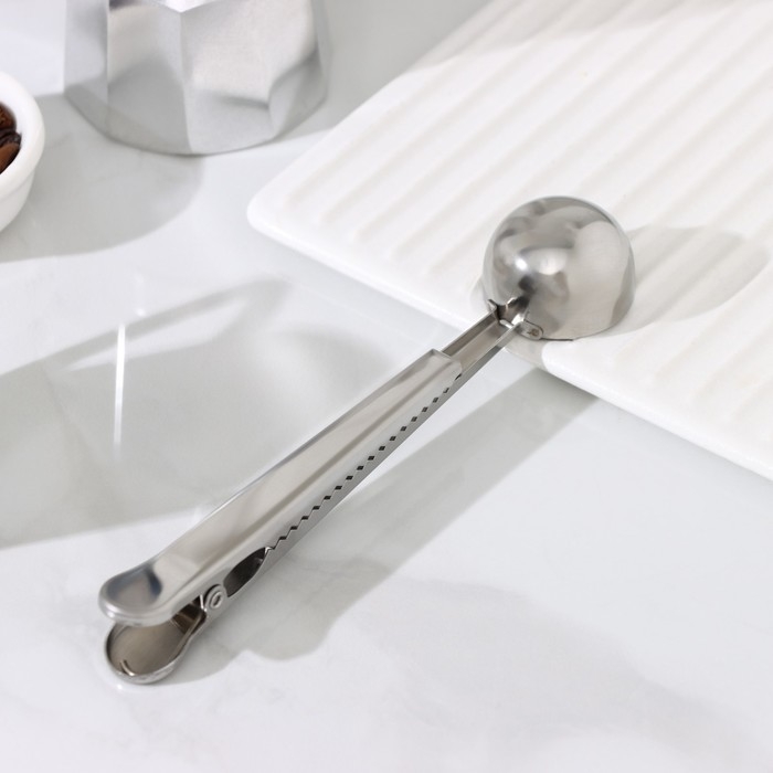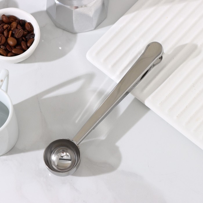 Ложка для кофе Доляна Aroma - это удобный и функциональный аксессуар для любителей кофе. Она оснащена зажимом, который позволяет герметично закрыть пакет с молотым кофе после измерения порции. Это сохраняет аромат и свежесть напитка.