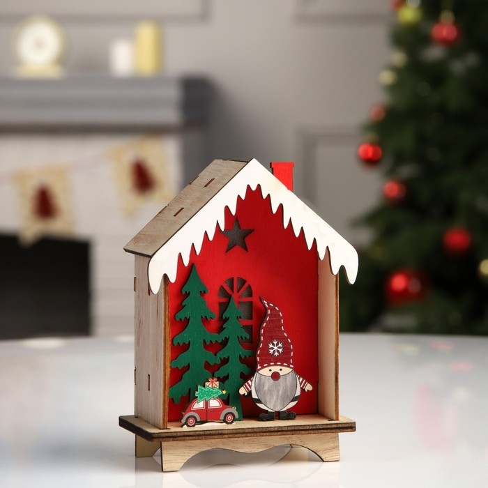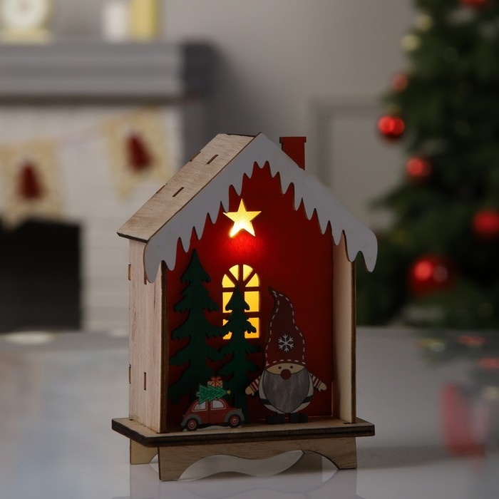 Светодиодная фигура «Домик с зелёными ёлками» 10.6 × 15 × 5.5 см, дерево, батарейки LR1130х3 (в комплекте), свечение тёплое белое