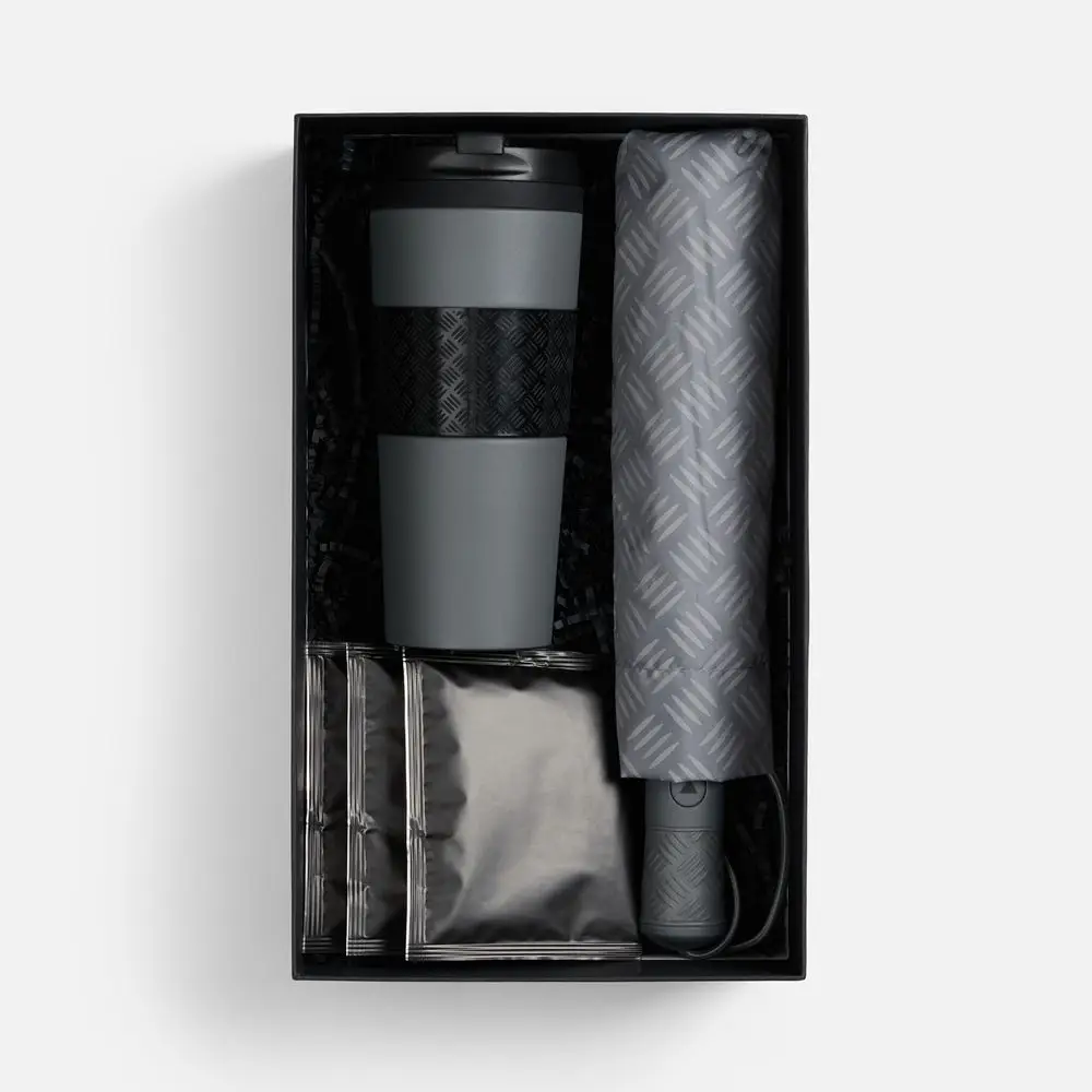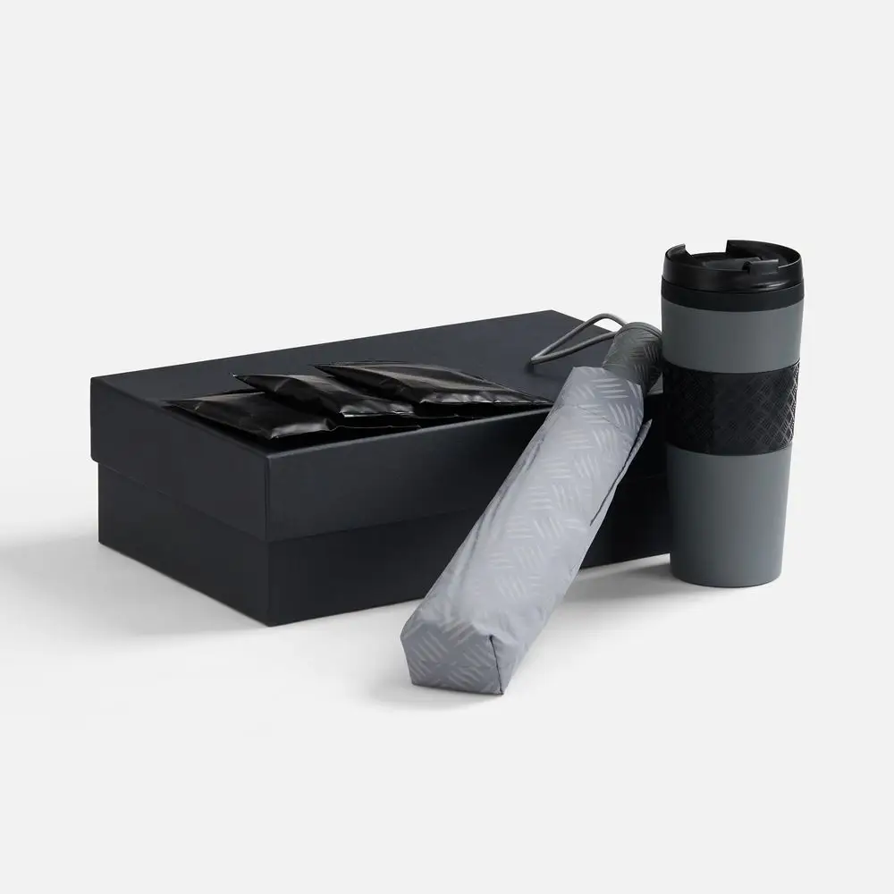 Кофе поможет всегда оставаться бодрым, термостакан сохранит его температуру, а зонт выручит в дождливый день. Чтобы всегда быть в тонусе и жить в активном ритме.