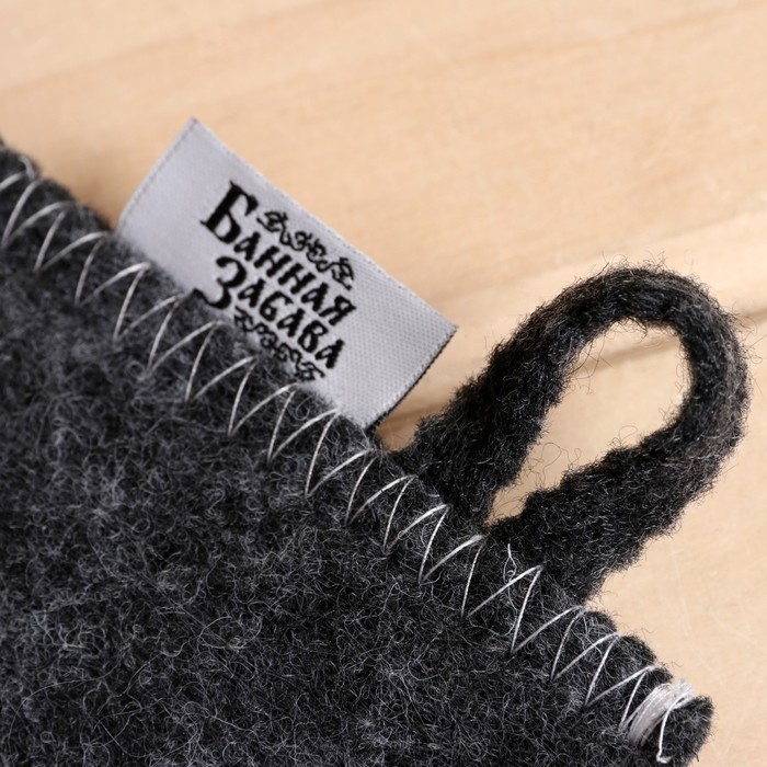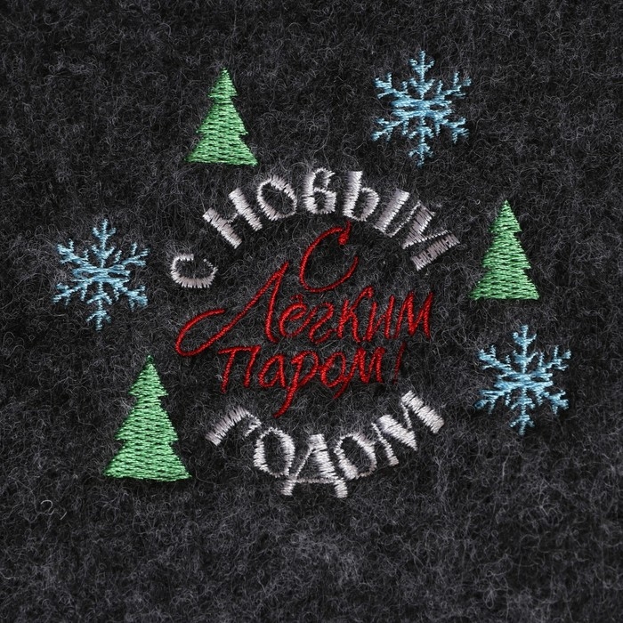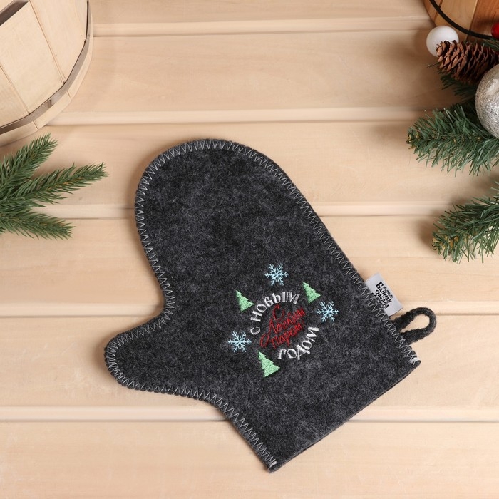 Рукавица для бани с вышивкой "С легким паром. С Новым Годом" серая