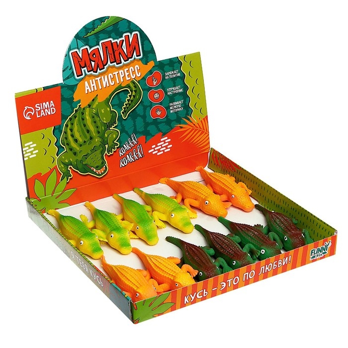 Антистресс сквиш мялка «Крокодил», с песком, цвета МИКС, в шоубоксе, тянучка