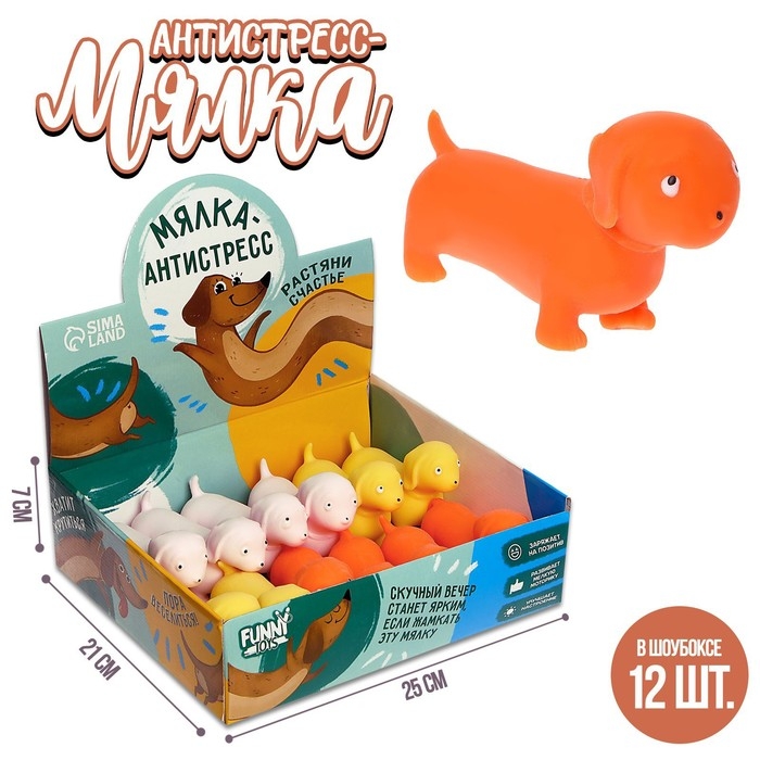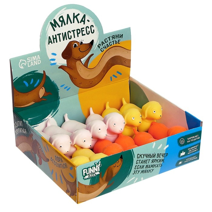 Антистресс сквиш мялка «Такса», собака, с песком, цвета МИКС, в шоубоксе, тянучка
