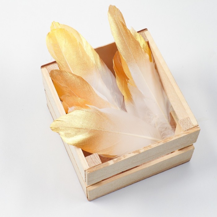 Перья для декора, золото , частичная окраска 13-15 см 10 шт