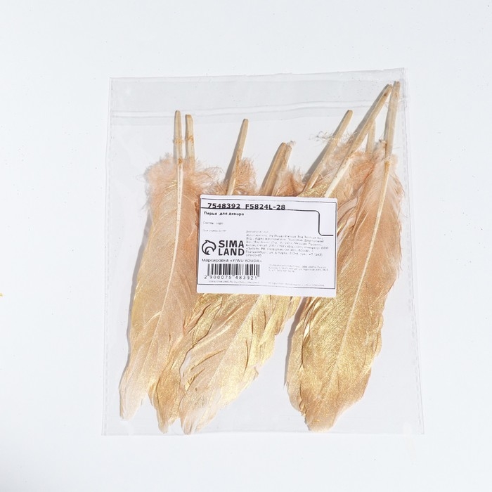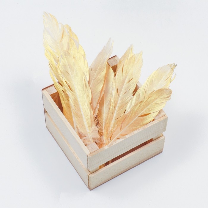 Перья для декора, золото полная окраска , 13-15 см 10 шт