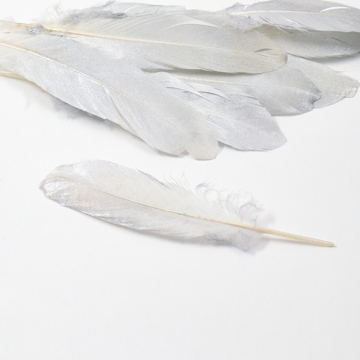 Перья для декора, серебро полная окраска , 13-15 см 10 шт