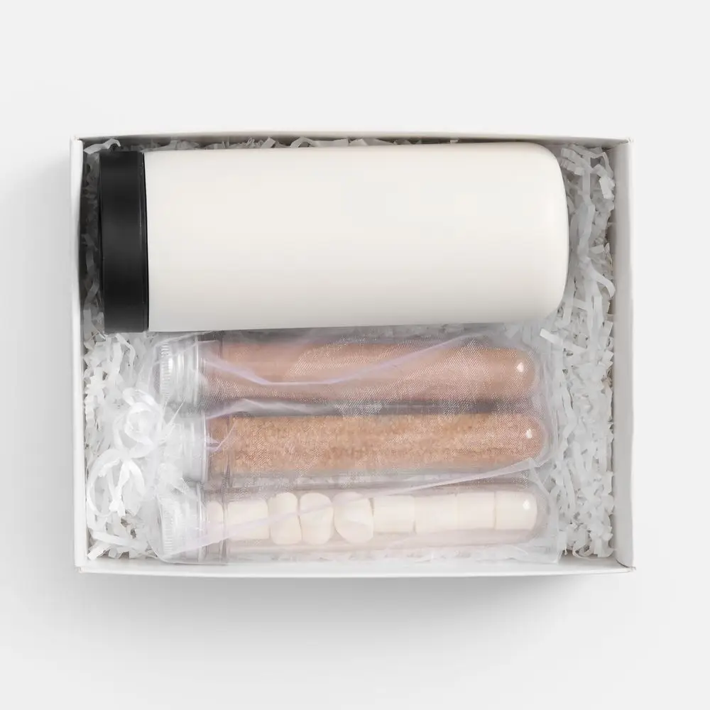 Домашний и такой уютный набор Heimen демонстрирует триумф тепла и комфорта. Чашка ароматного какао с нежными маршмеллоу в стильном термостакане, нежные объятия пушистых носков на ногах — то, что нужно для расслабляющего и умиротворяющего вечера.