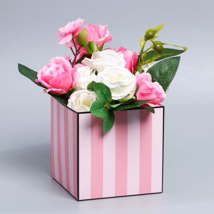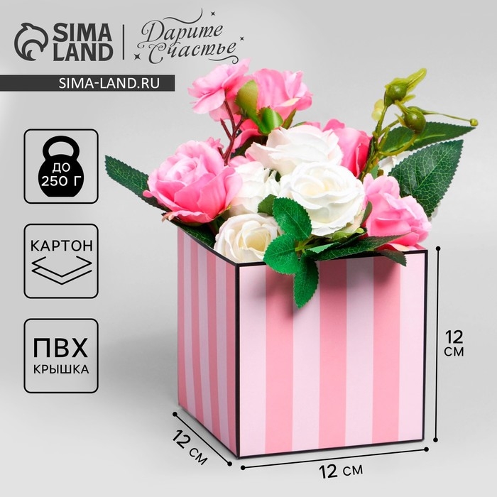 Коробка подарочная для цветов с PVC крышкой, упаковка, «Розовые полосы», 12 х 12 х 12 см