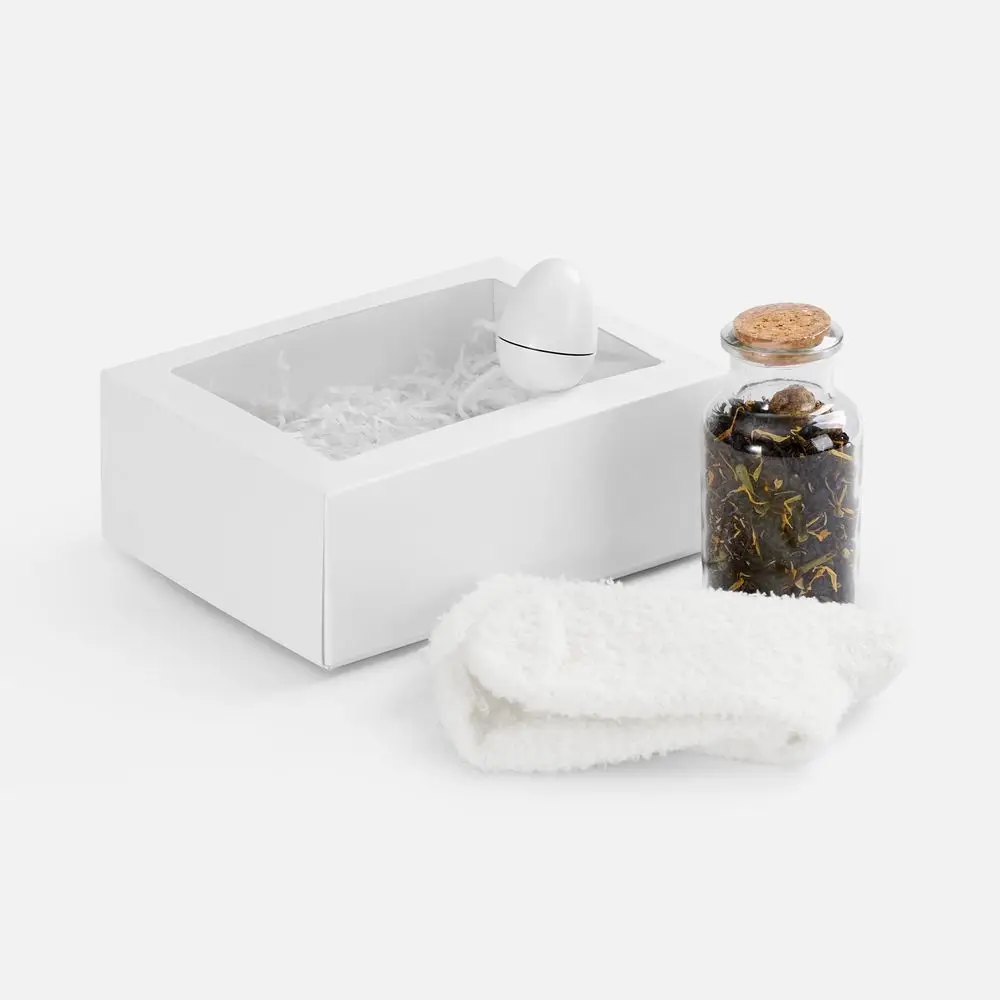 Это базовые элементы заботы — мягкие носки и бальзам для губ — и уникальный сорт чая, задающий особое настроение. Идеальное решение для всех, кто ценит спокойные моменты уединения и эстетику повседневных ритуалов.