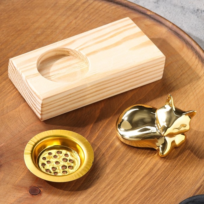 Подставка для благовоний порошковых и конусов "Кошечка", дерево, 8х13,5х6,5 см