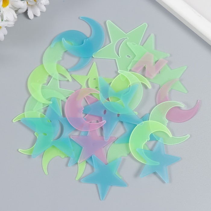 Наклейка фосфорная пластик "Звезды и месяцы" набор 25-29 шт 19х13 см