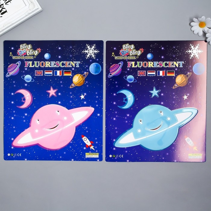 Наклейка фосфорная "Планета" с клеевыми подушечками набор 3 шт МИКС 29,5х25 см