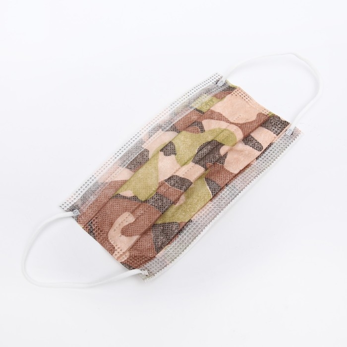 Маска медицинская Latio коричневый камуфляж, 2 фиксатора формы, 50 шт картонный блок