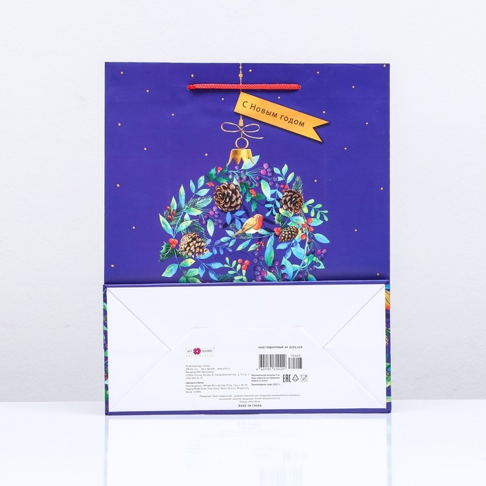 Новогодний подарочный пакет с ярким, красочным рисунком создаст праздничное настроение.