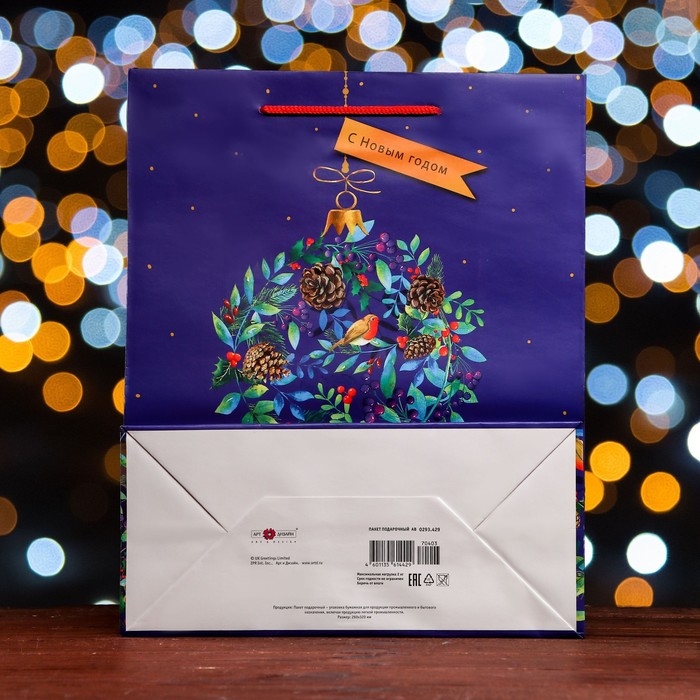 Новый год. Пакет подарочный "Новогодний венок", 26 х 32 х 12 см.