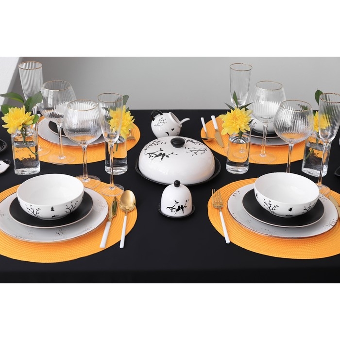 Посуда сервировочная Доляна «Весенний вечер» изготовлена из качественного доломита. Предметы выполнены в чёрно-белых тонах, поэтому они подойдут практически для любой сервировки разных стилей, а также с лёгкостью украсят интерьер вашей кухни.