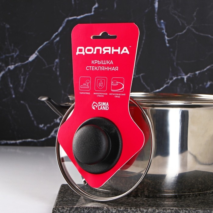 Крышка стеклянная для сковороды и кастрюли «Доляна», d=14 см, нержавеющий обод, пластиковая ручка