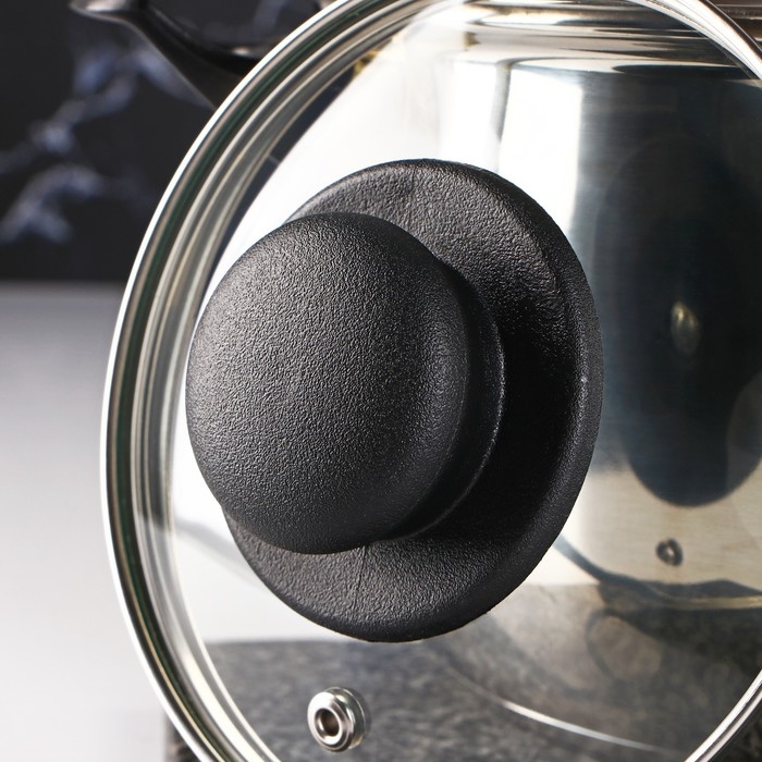 Крышка для сковороды и кастрюли Доляна стеклянная, универсальная, с силиконовым ободком и ручкой, d=16/18/20 см, цвет чёрный