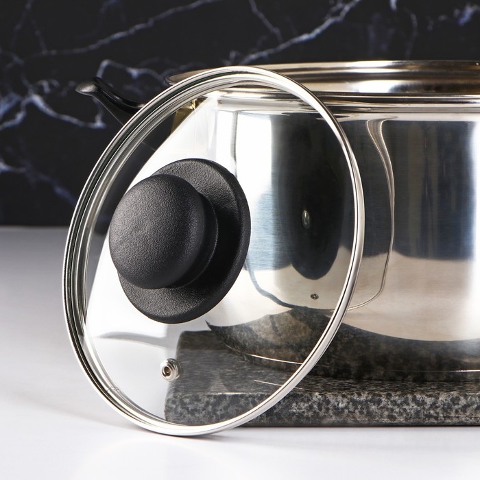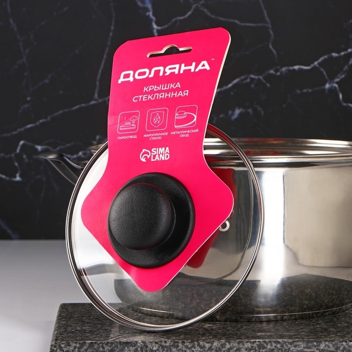 Крышка стеклянная для сковороды и кастрюли «Доляна», d=16 см, нержавеющий обод, пластиковая ручка