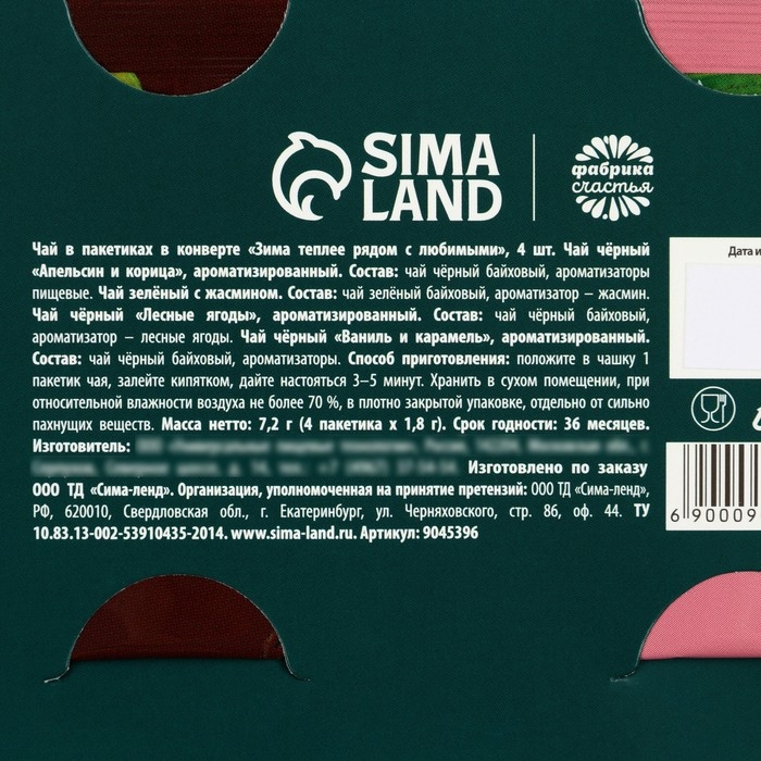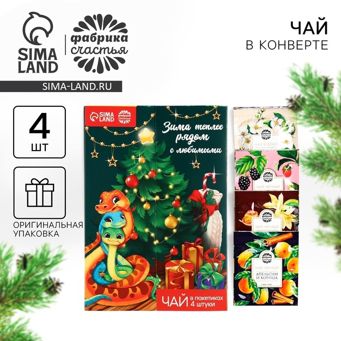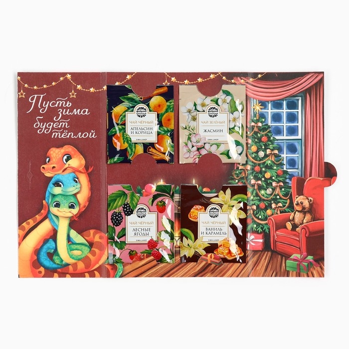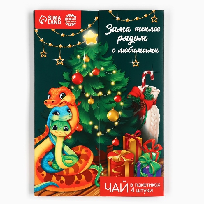 Чай в пакетиках «Зима теплее рядом с любимыми» в открытке, 4 шт. x 1,8 г.