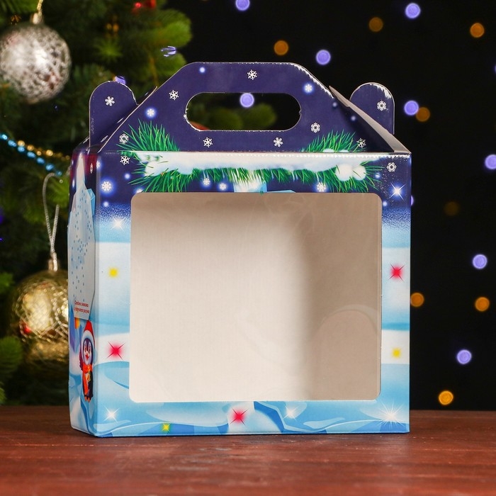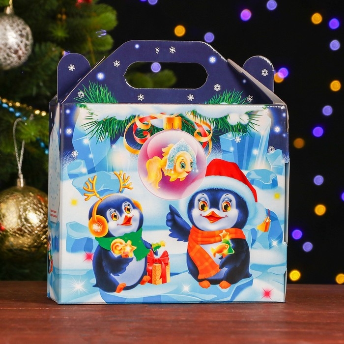 Новый год. Подарочная коробка "Пингвины", 17,5 х 20 х 7 см.