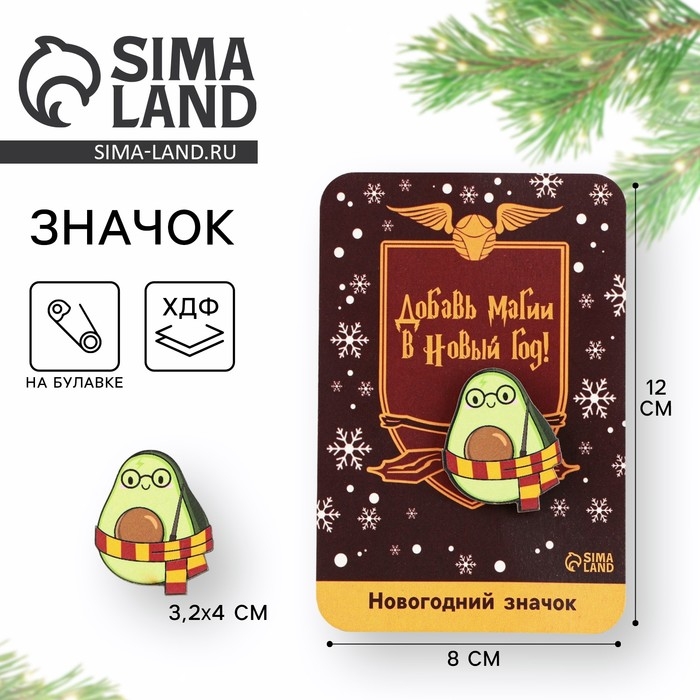 Значок новогодний закатной «Новый год: Авокадокедавра», 3,2 х 4 см