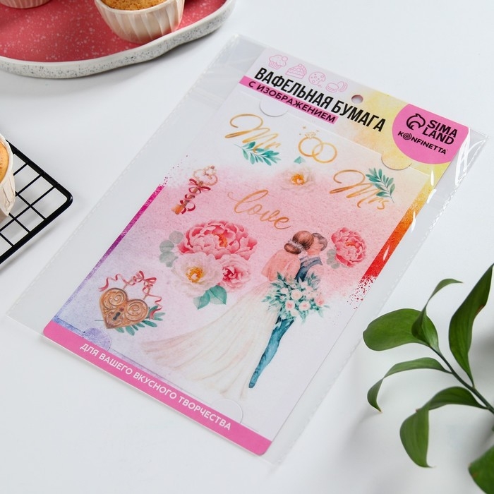 Вафельные картинки съедобные «Свадьба» для капкейков, торта KONFINETTA, 1 лист А5