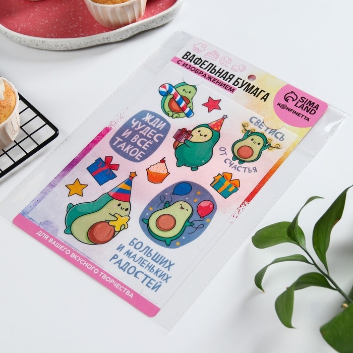 Вафельные картинки съедобные «Жди чудес» для капкейков, торта KONFINETTA, 1 лист А5
