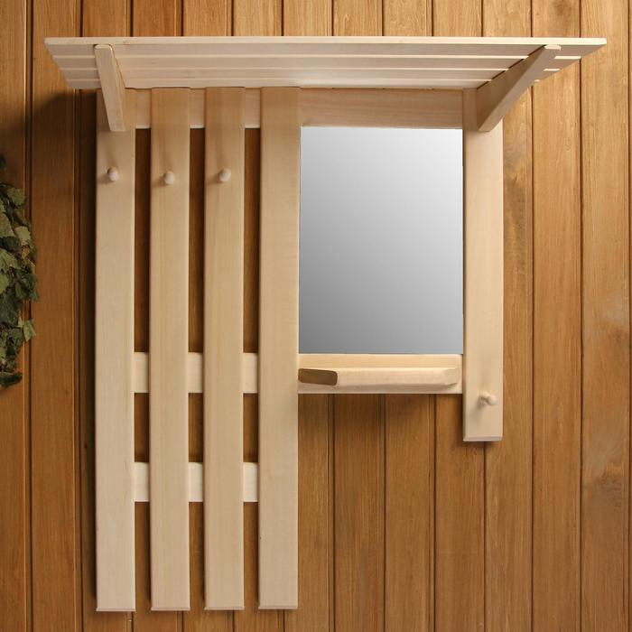 Полка вешалка с зеркалом, большая, 3 крючка