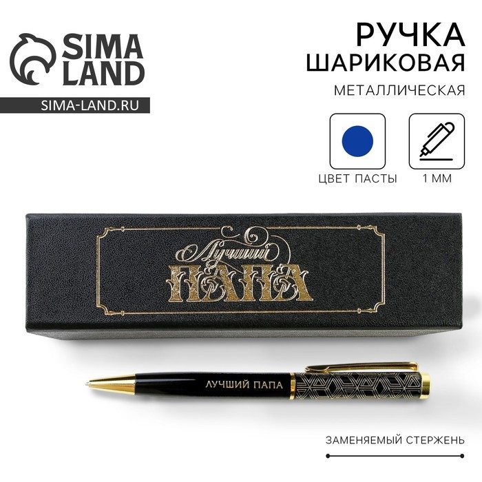 Ручка в футляре «Лучший папа», металл, 1.0 мм, синяя паста