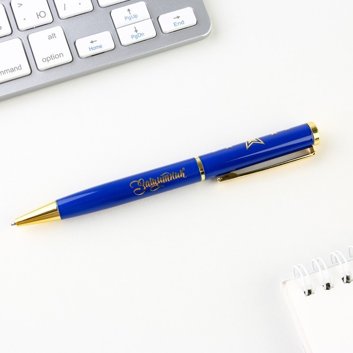 Ручка шариковая синяя паста, пластиковая со звездой "С 23 Февраля"