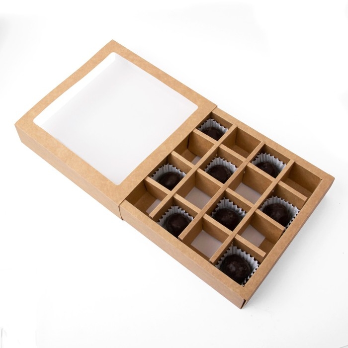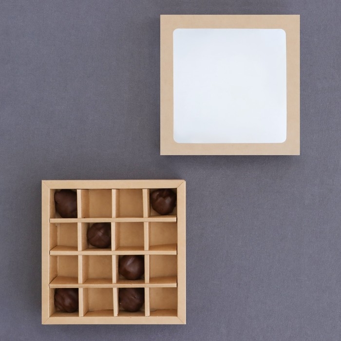 Коробка для 16 конфет, крафт 17,7 х 17,7 х 3,8 см. Кондитерская упаковка