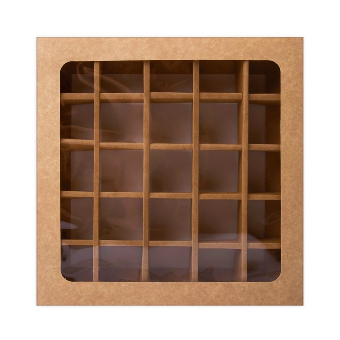 Коробка для 25 конфет, крафт, 22 х 22 х 3,5 см. Кондитерская упаковка