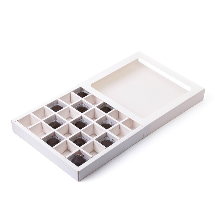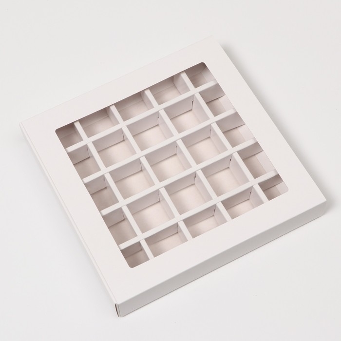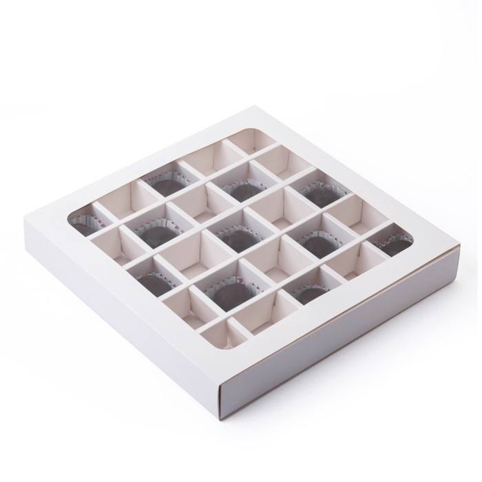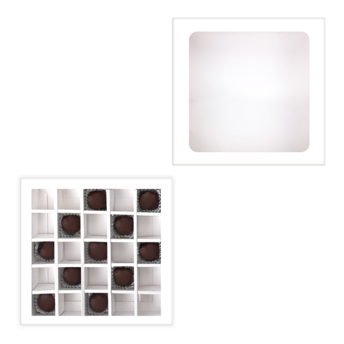 Коробка для 25 конфет, белая, 22 х 22 х 3,5 см. Кондитерская упаковка