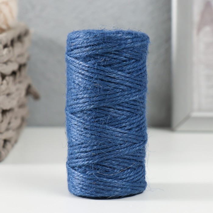 Пряжа 100% джут "Синий" 50 метров 4х4х10 см
