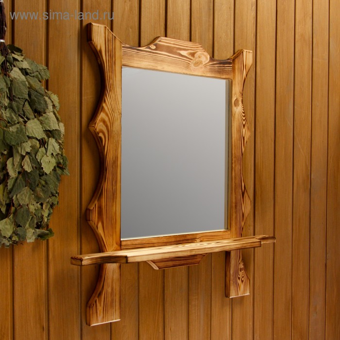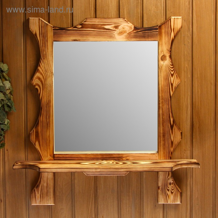 Зеркало резное "Квадрат" с полкой, обожжённое, 53×53×15 см