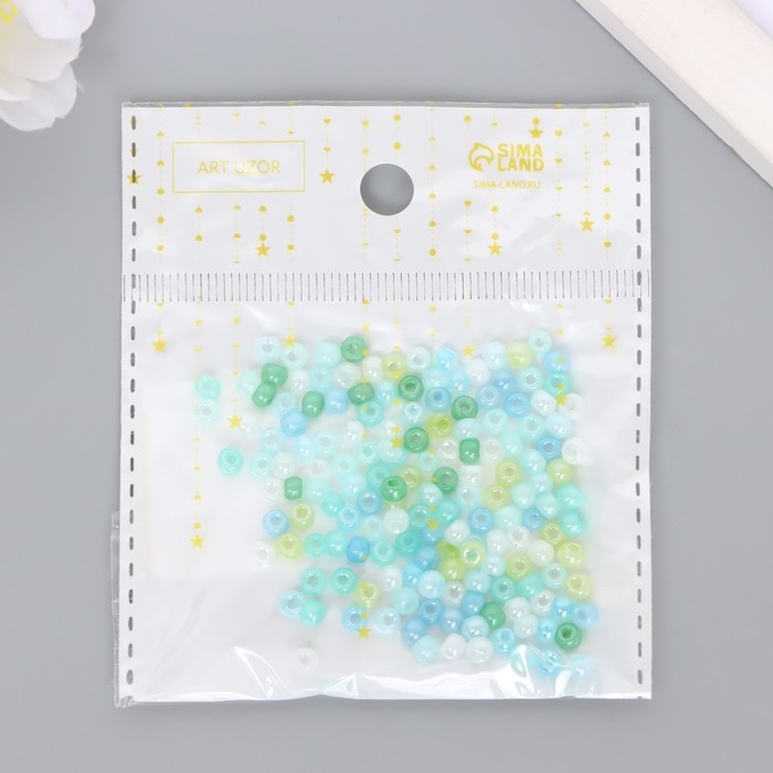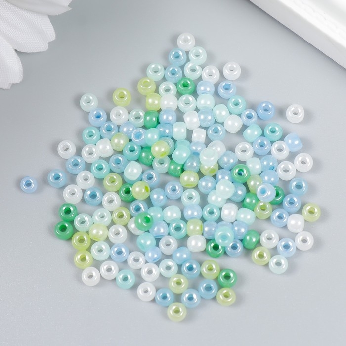 Бисер стекло 6/0 "Зелёно-голубой меланж" 10 гр