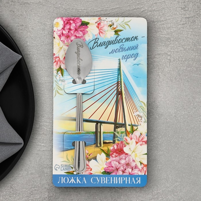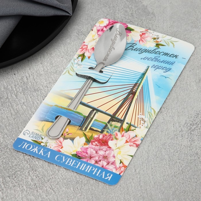 Ложка с гравировкой на открытке «Владивосток», 3 х 14 см