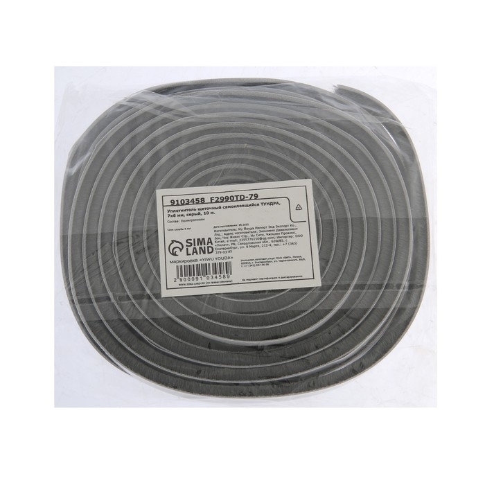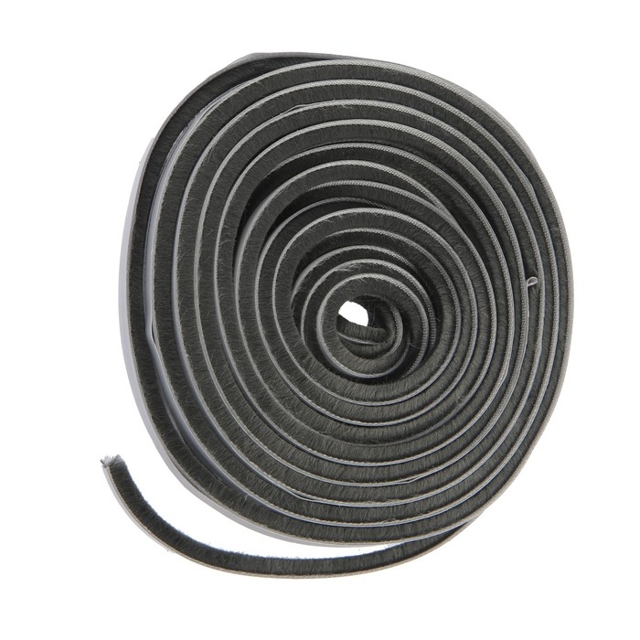 Уплотнитель щеточный самоклеящийся ТУНДРА, 7х6 мм, серый, 10 м.