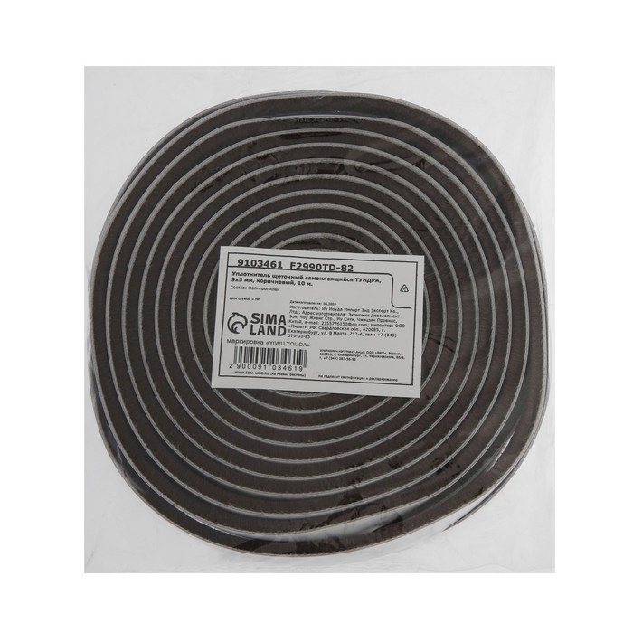 Уплотнитель щеточный самоклеящийся ТУНДРА, 9х5 мм, коричневый, 10 м.