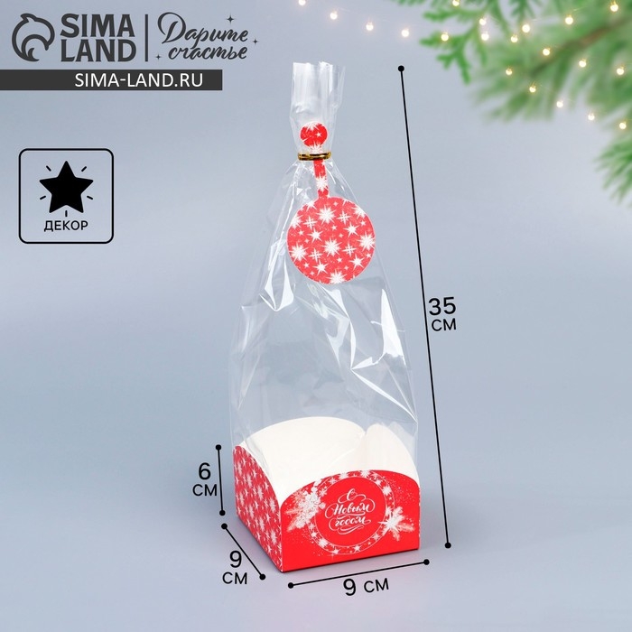 Пакет с коробкой «Новогодний подарок», 9 х 9 х 35 см, Новый год