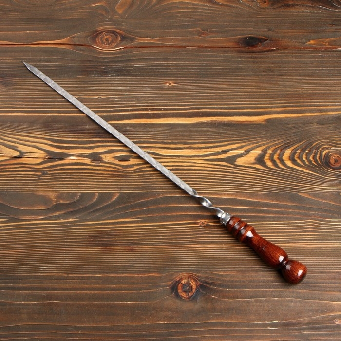 Шампур с деревянной ручкой, рабочая длина - 50 см, ширина - 10 мм, толщина - 3 мм с узором