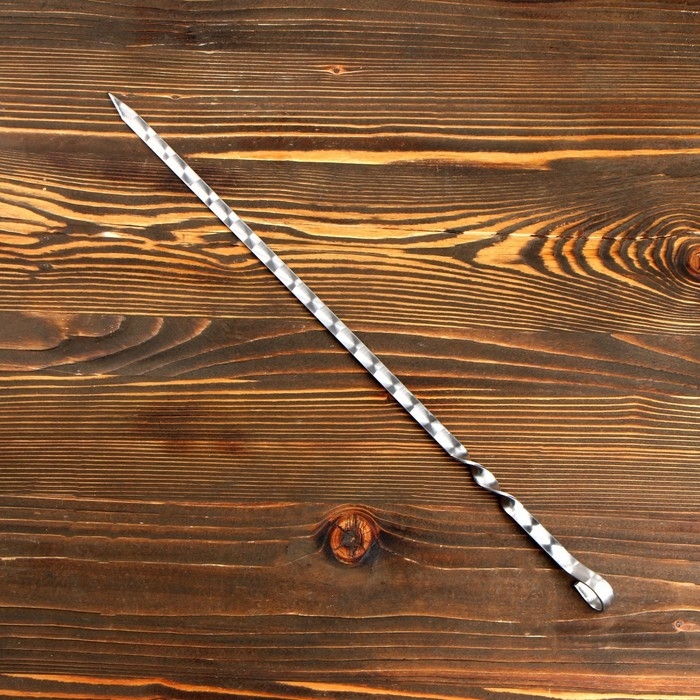 Шампур с деревянной ручкой, рабочая длина - 50 см, ширина - 10 мм, толщина - 3 мм с узором