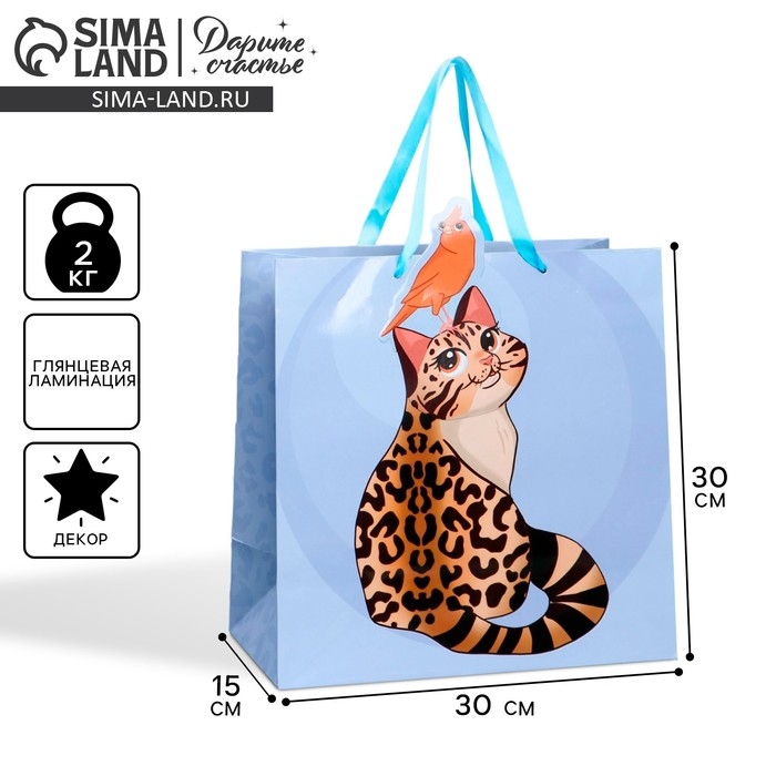 Пакет подарочный, упаковка, «Кот», 30 х 30 х 15 см