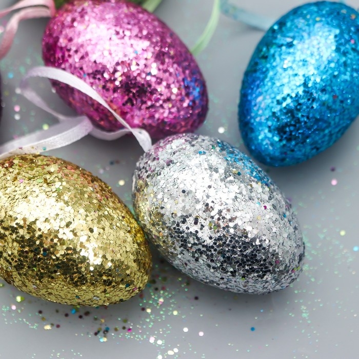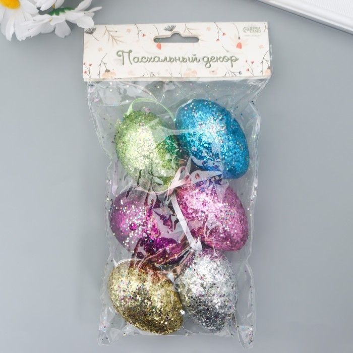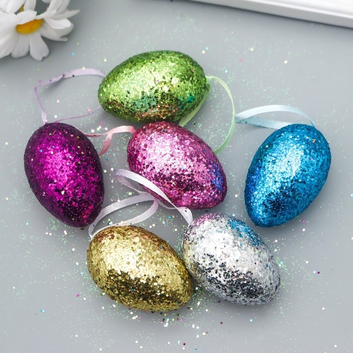 Декор пасхальный подвеска "Яйцо - блёстки" набор 6 шт разноцветные 6х4х4 см