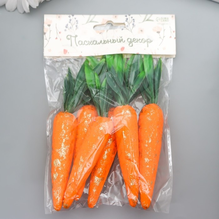 Декор пасхальный "Морковки с золотыми блёстками" набор 6 шт 10 см