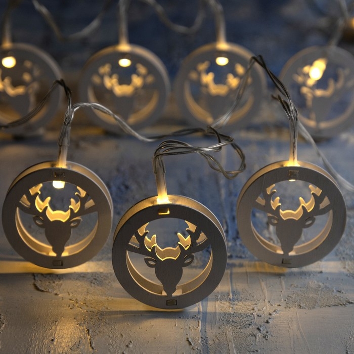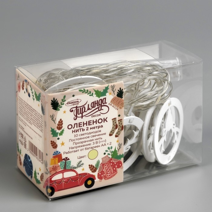 Гирлянда «Нить» 2 м с насадками «Олень», IP20, прозрачная нить, 10 LED, батарейки AAх2 (нет в комплекте), свечение тёплое белое