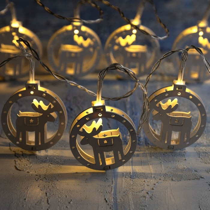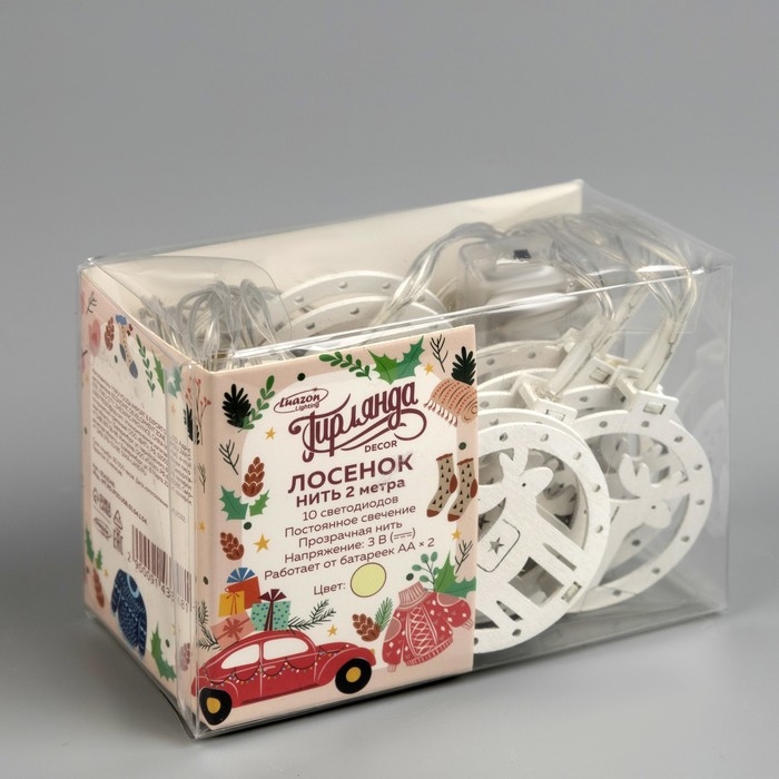 Гирлянда «Нить» 2 м с насадками «Оленёнок», IP20, прозрачная нить, 10 LED, батарейки AAх2 (не в комплекте), свечение тёплое белое